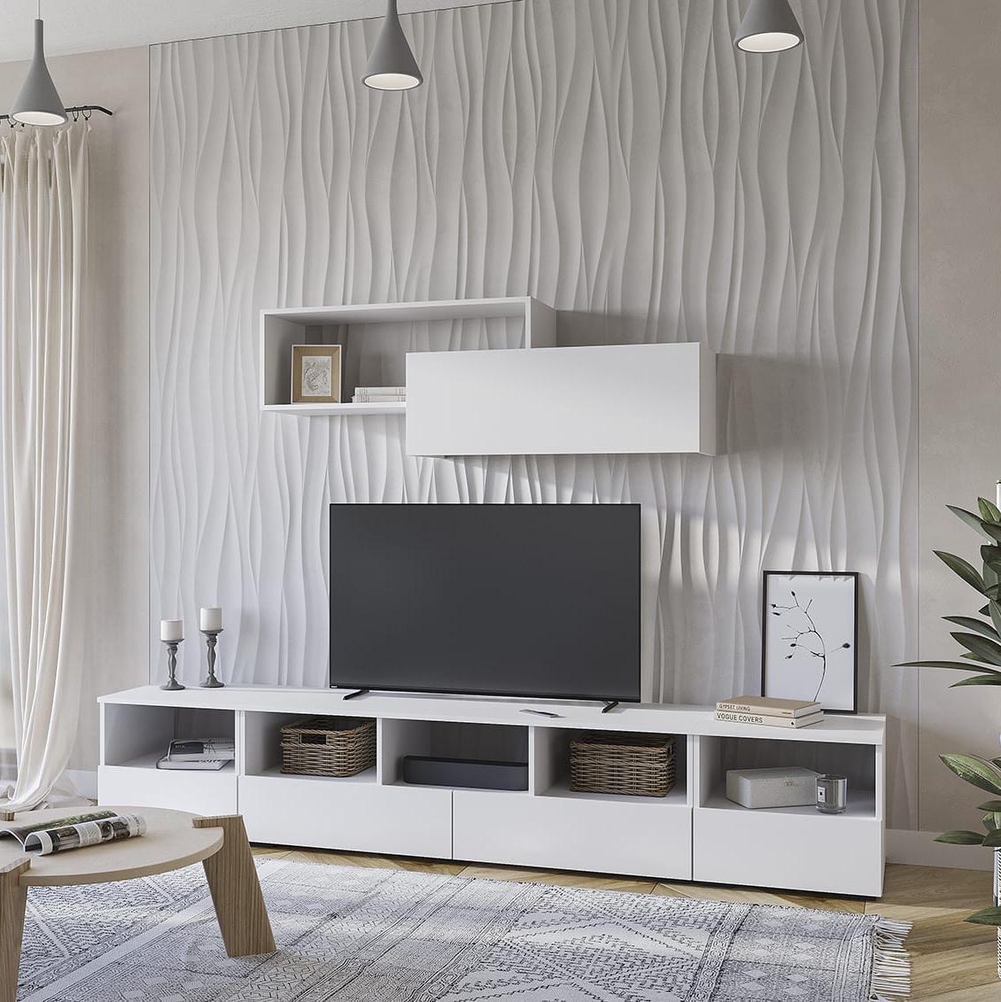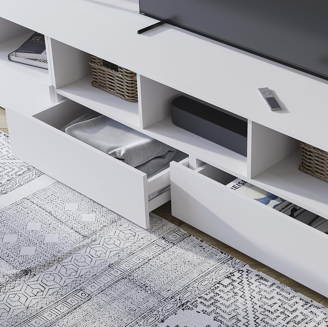 - Тумба ТВ ХЕЛЕН ТБ-02 // белый, белый - Ш 1402 х В 442 х Г 460 мм