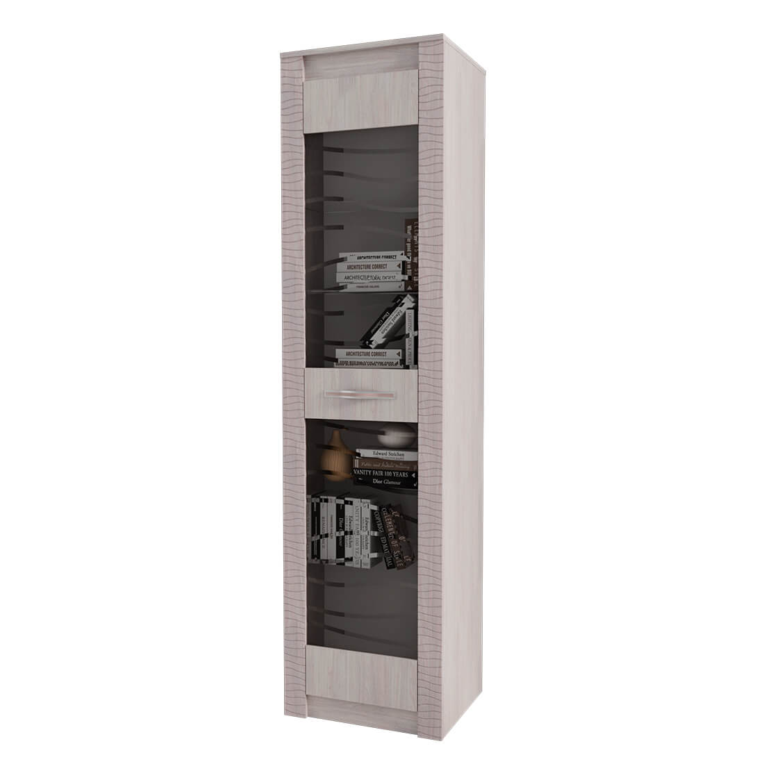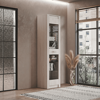 Пенал-витрина МОНАКО ПН-20 // ясень белый, ясень белый/f12 - Ш 560 х В 2200 х Г 460 мм