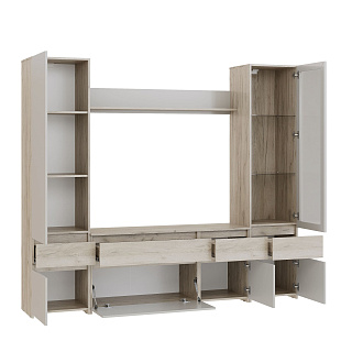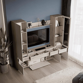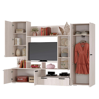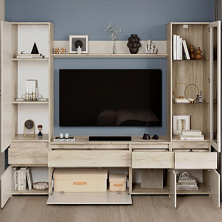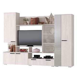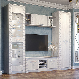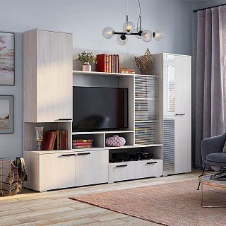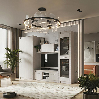 Элегантная модульная гостиная МОНАКО (ясень белый) — это неисчерпаемый источник вдохновения для создания идеального комфорта и домашнего уюта, гармонично объединяющий в себе актуальные тренды современной классики и очаровательного прованса. Эта изысканная мебельная композиция буквально погружает в атмосферу тепла и радушия, предлагая при этом безупречную практичность для вашей главной комнаты. В продуманный комплект входят самые необходимые элементы для стильной организации пространства: изящный пенал-витрина ПН-20 со стеклянными фасадами для эффектной демонстрации любимой посуды или декора, функциональная ТВ-тумба ТБ-27 для обустройства комфортной медиазоны, а также вместительный двухстворчатый шкаф ШК-37 с хромированной штангой и полками для аккуратного хранения гардероба и полка-антресоль АН-07. Надежные корпуса из высококачественного ЛДСП и фасады с изысканными декоративными вставками из МДФ выполнены в благородном светлом оттенке «ясень белый», который визуально расширяет пространство и наполняет комнату естественным светом. Если вы планируете купить светлую модульную гостиную в стиле современная классика и прованс, готовая композиция МОНАКО станет абсолютно лучшим выбором благодаря своей потрясающей эргономике, аристократичной эстетике и безупречному качеству исполнения каждой детали.