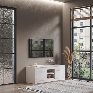 Тумба ТВ МОНАКО ТБ-27 // ясень белый, ясень белый/f12 - Ш 1360 х В 502 х Г 464 мм