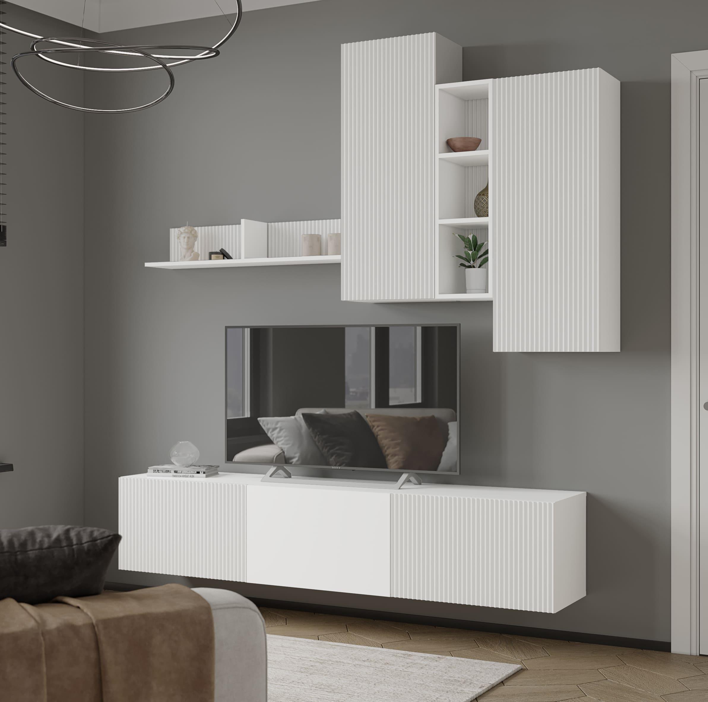 - Тумба ТВ СИРИНИЯ // белый, белый снег- Ш 1902 х В 388 х Г 380 мм