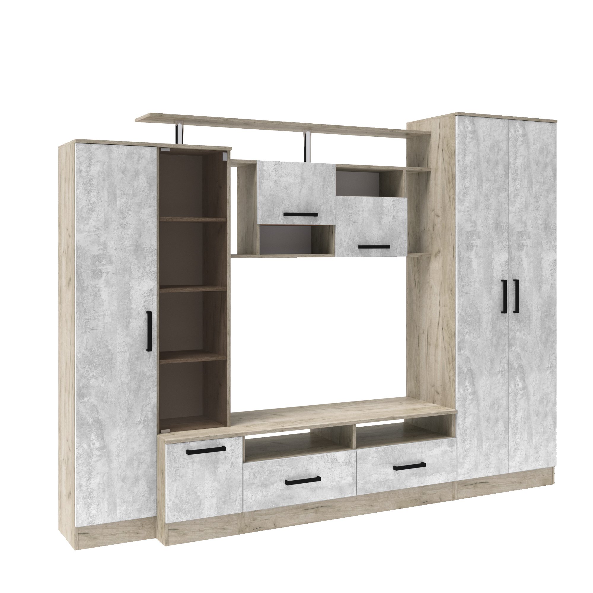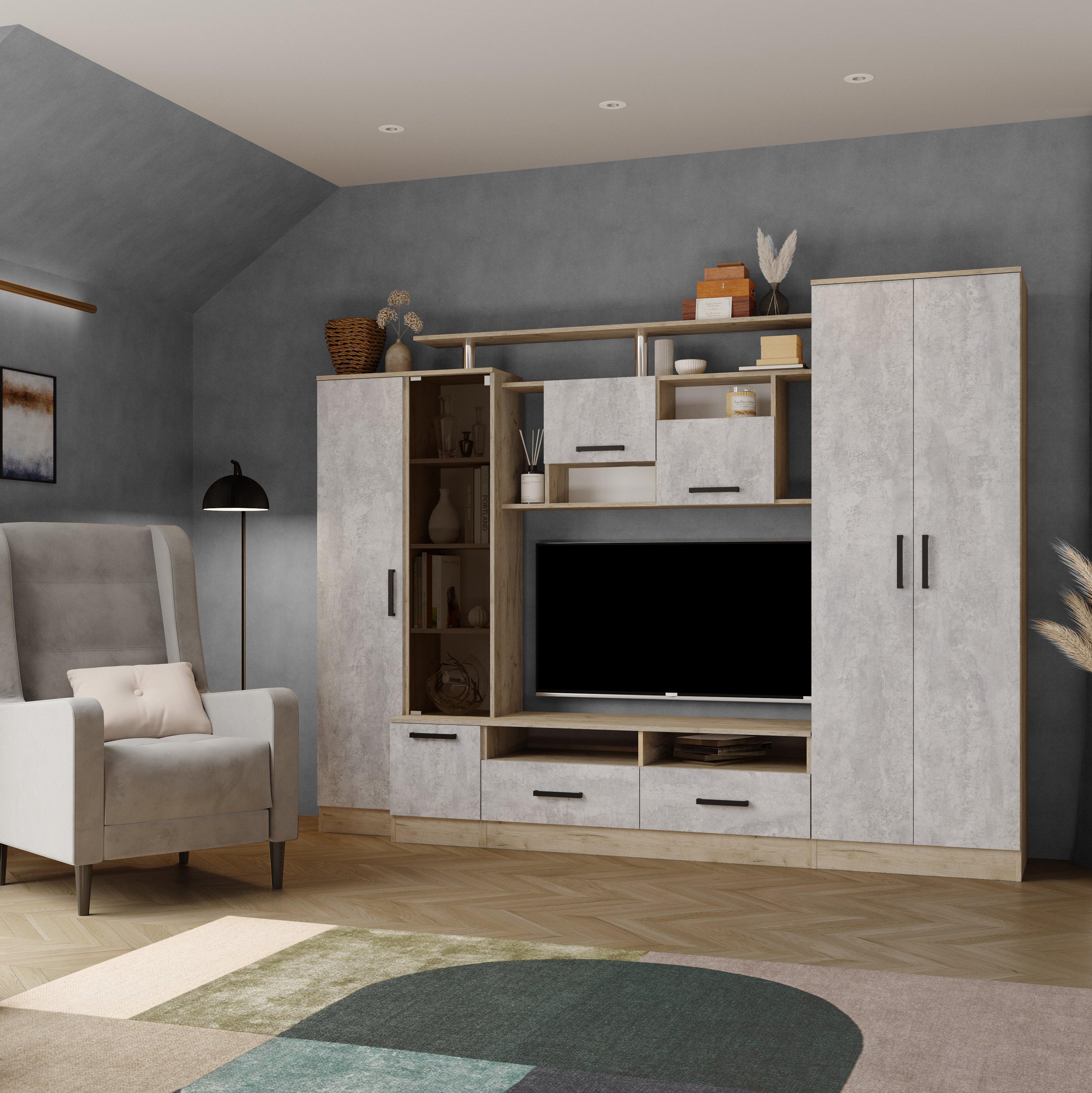 Стенка ОСКАР-5 // дуб крафт серый,цемент