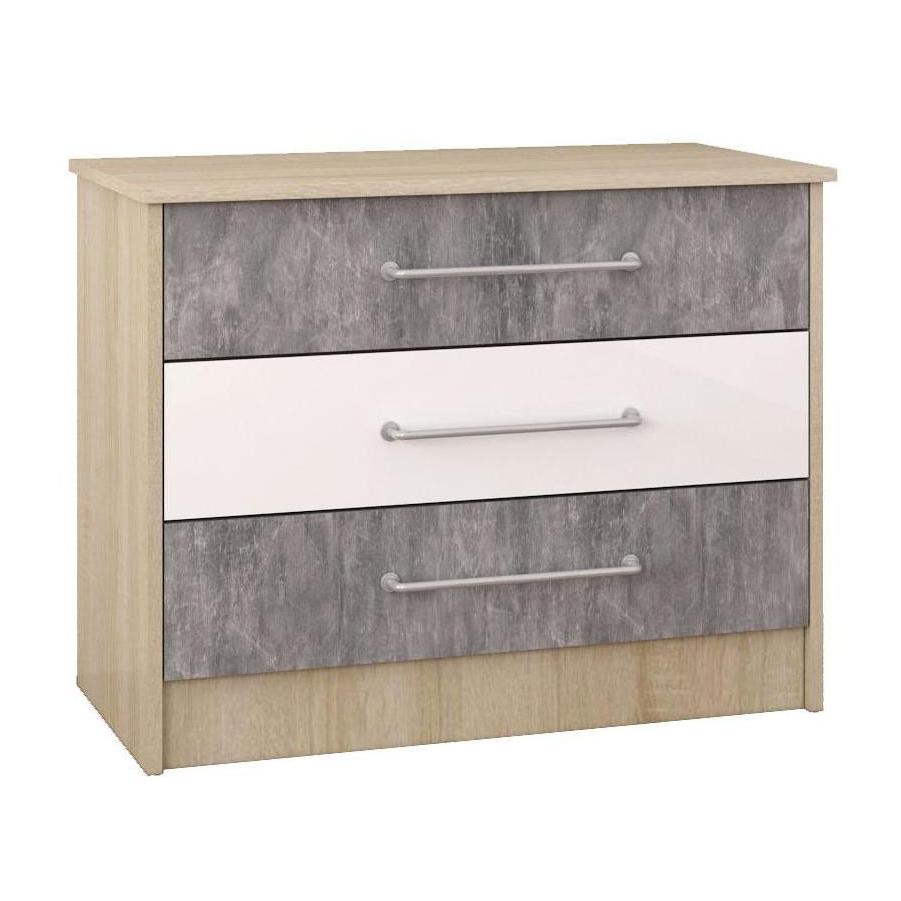 Комод КОЛИБРИ // дуб сонома, ателье светлое/акрил белый
