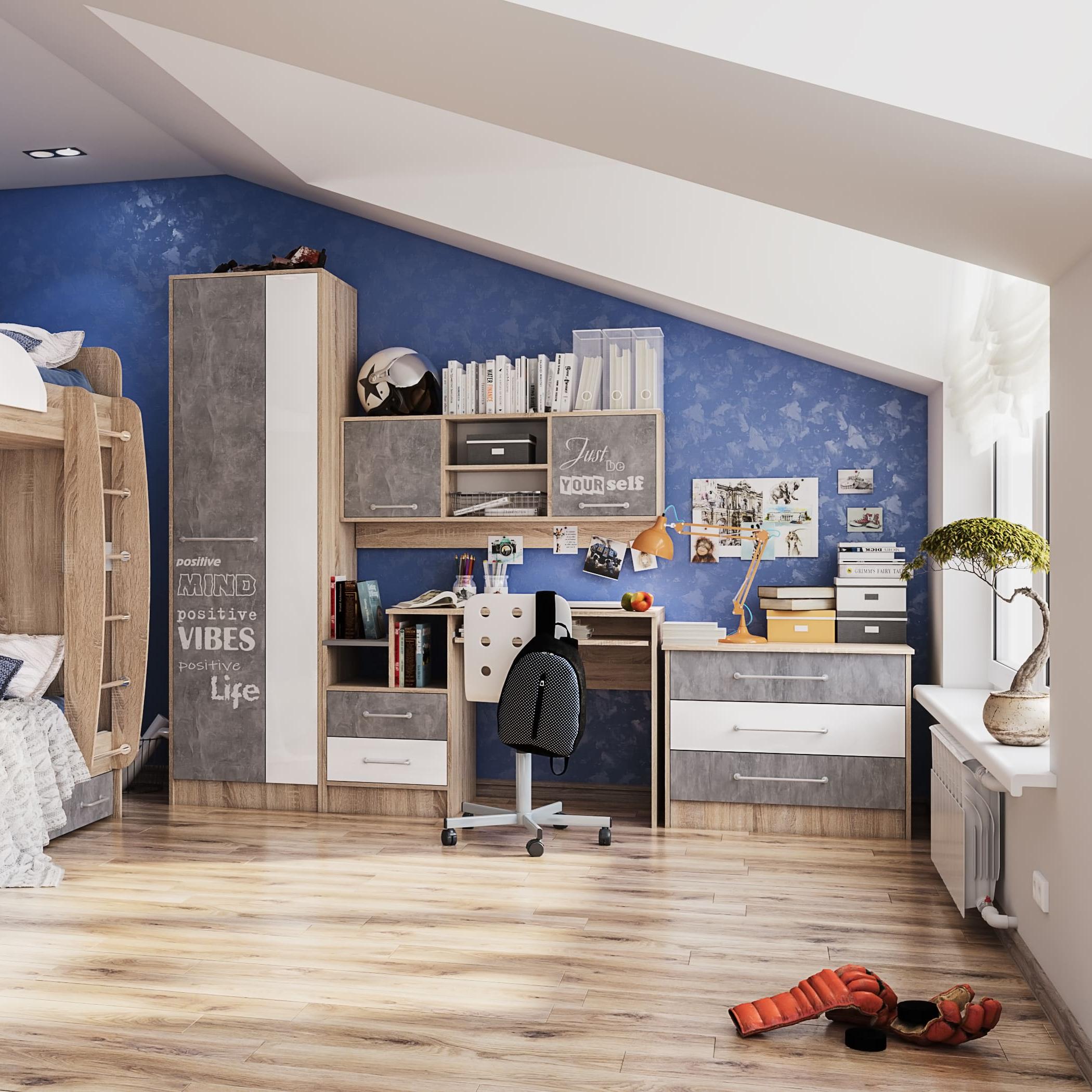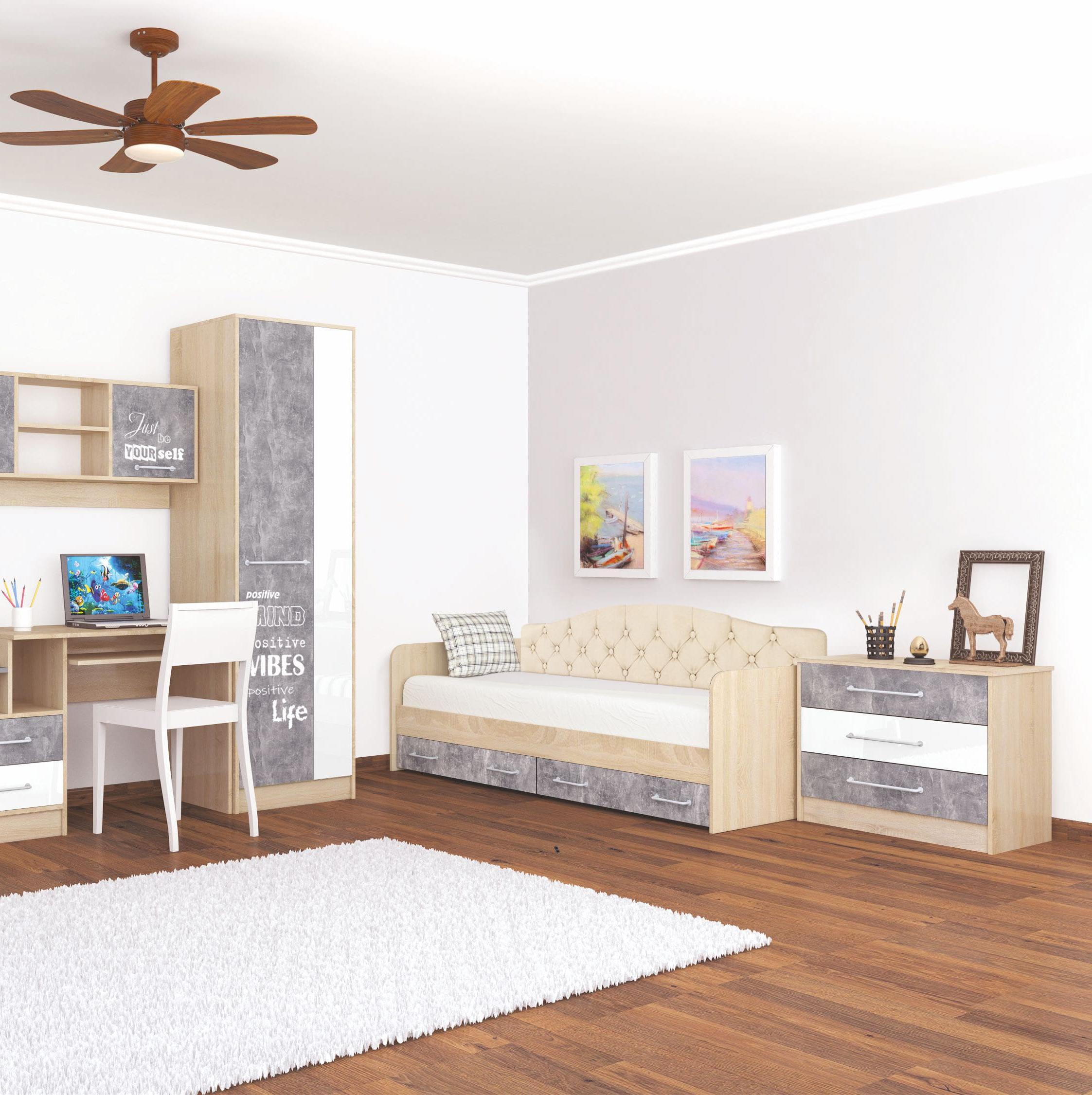 Комод КОЛИБРИ // дуб крафт серый, графит серый/камень серый