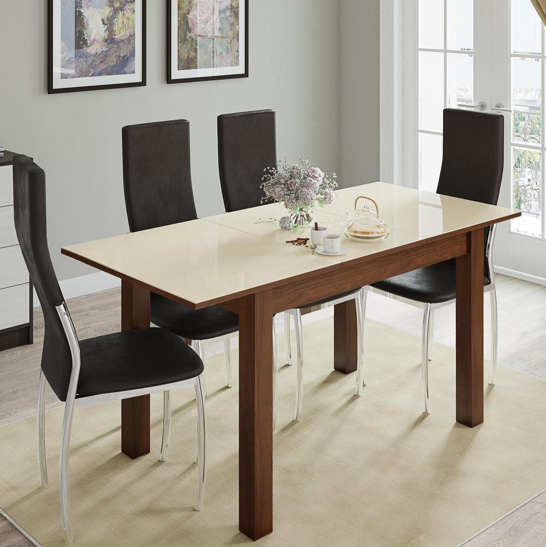 Стол обеденный БРУНО раскладной 1000х600 // орех шоколадный, орех шоколадный, лакобель ваниль