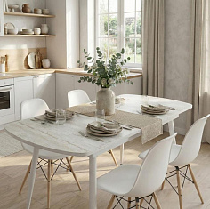Стол обеденный раздвижной ПЛАСТИК (подстолье конус белый // белый, винтерберг